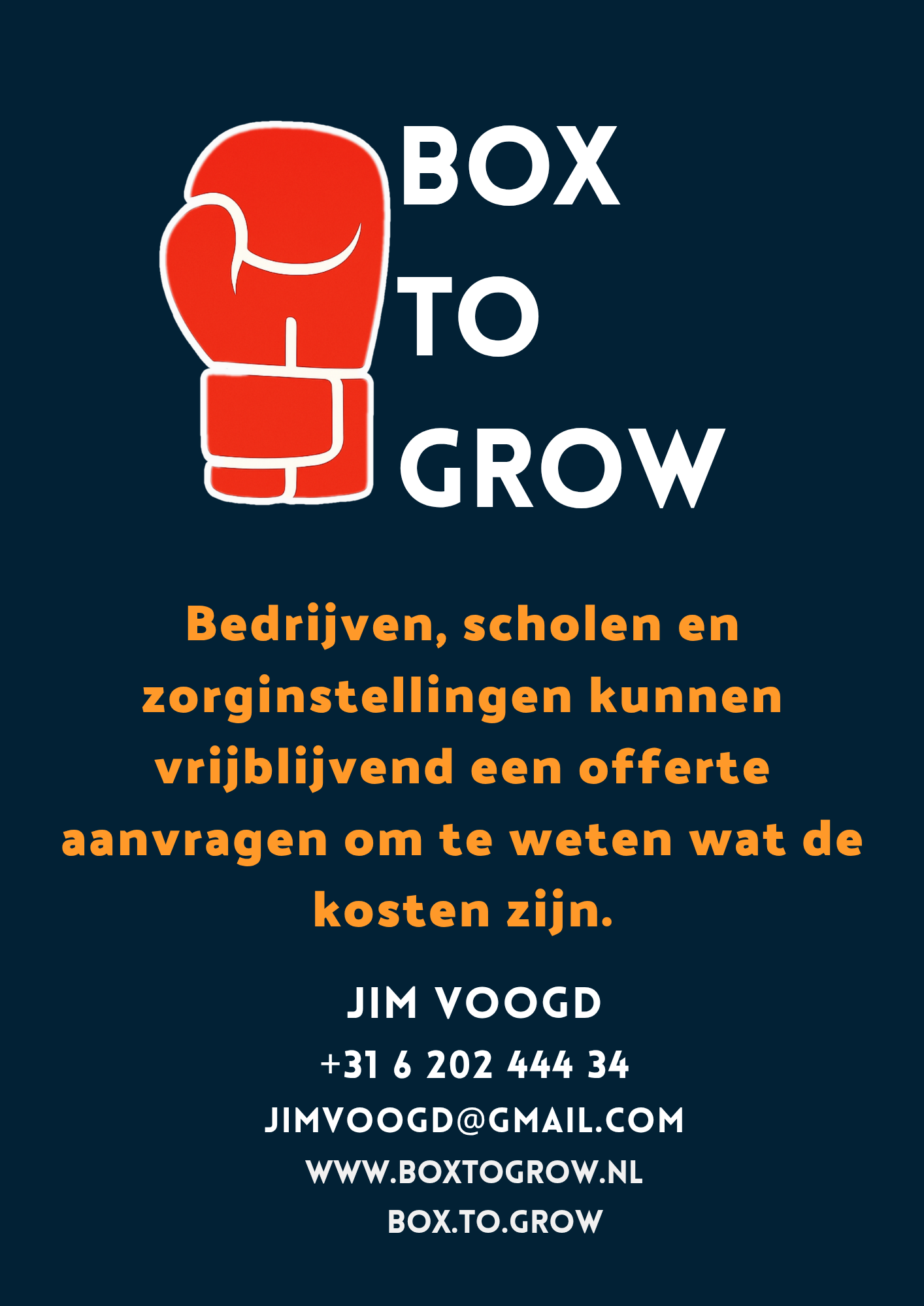 Box to Grow helpt jongeren en volwassenen om sterker in hun schoenen te staan - zowel mentaal als fysiek. Door middel van bokscoaching werken we aan thema's zoals zelfvertrouwen, omgaan met boosheid, stress en het vinden van balans. In de sessies combineren we bewegen met reflectie: uit je hoofd, in je lijf.